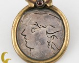 Sterling Silver Women's Etched Profile Brooch w/ Gold Tone Bezel & Gemstone
