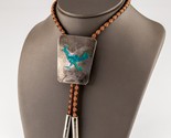 Sterlingsilber Bolo Krawatte Mit Türkis Einlage Huhn Emblem Und Geflochten Leder