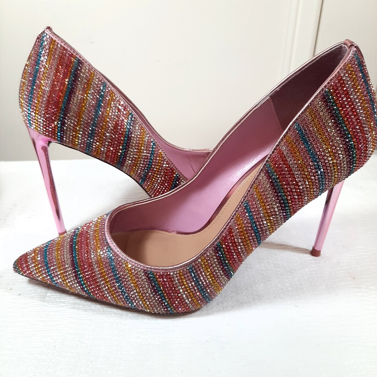 - Steve Madden Vivacious pump size 9.5 rainbow pastel Barbie rhinestone pink heels