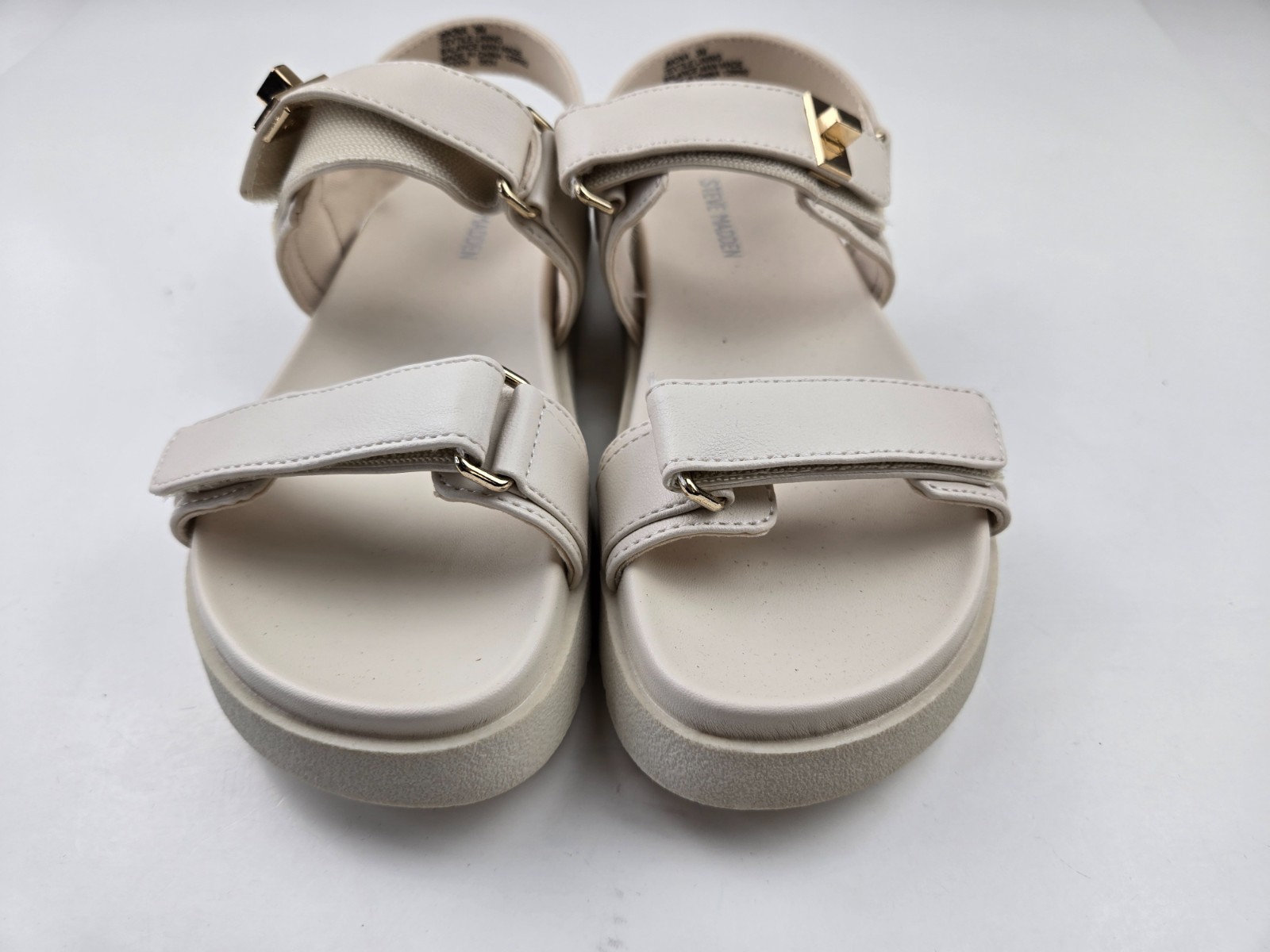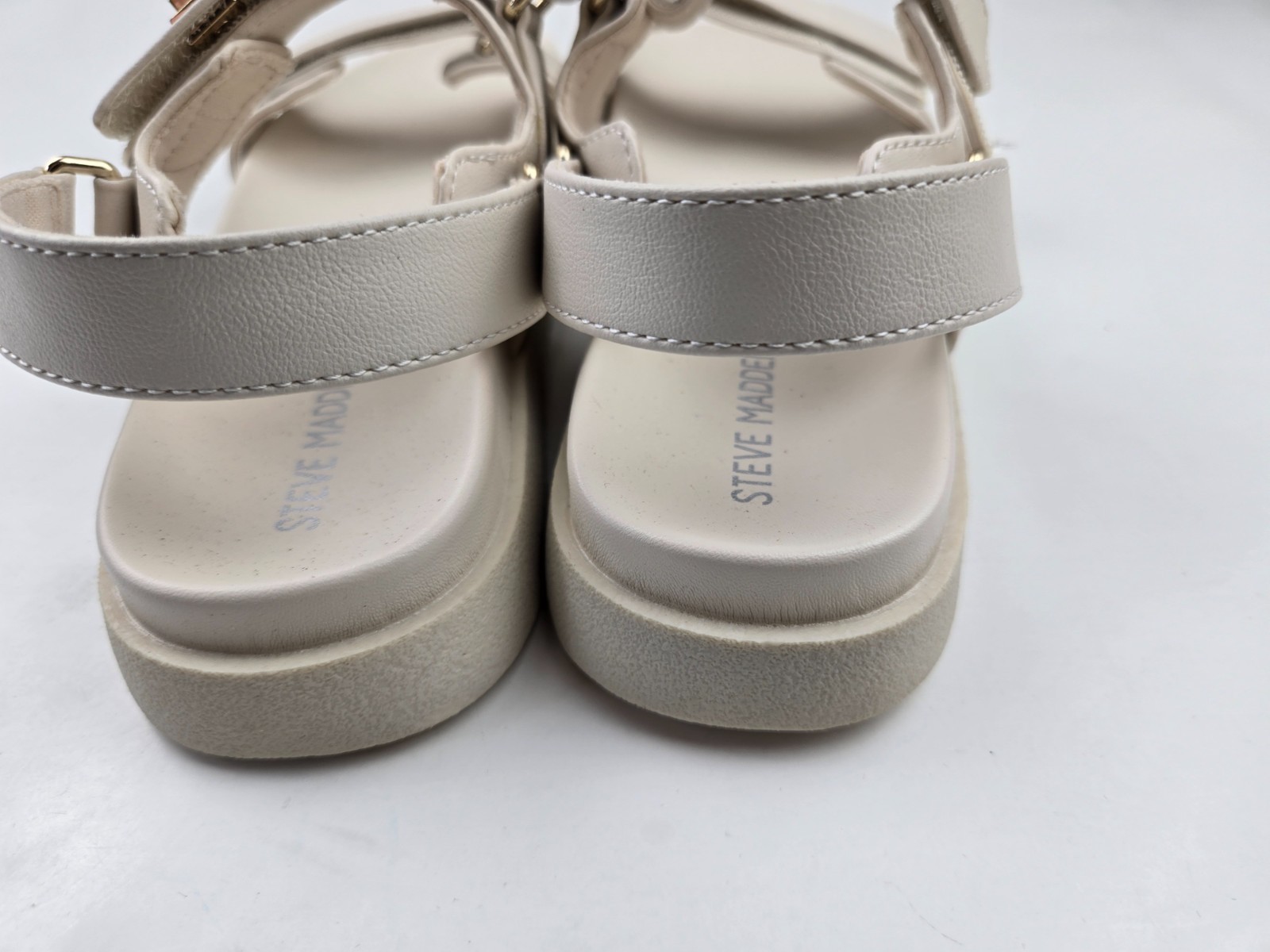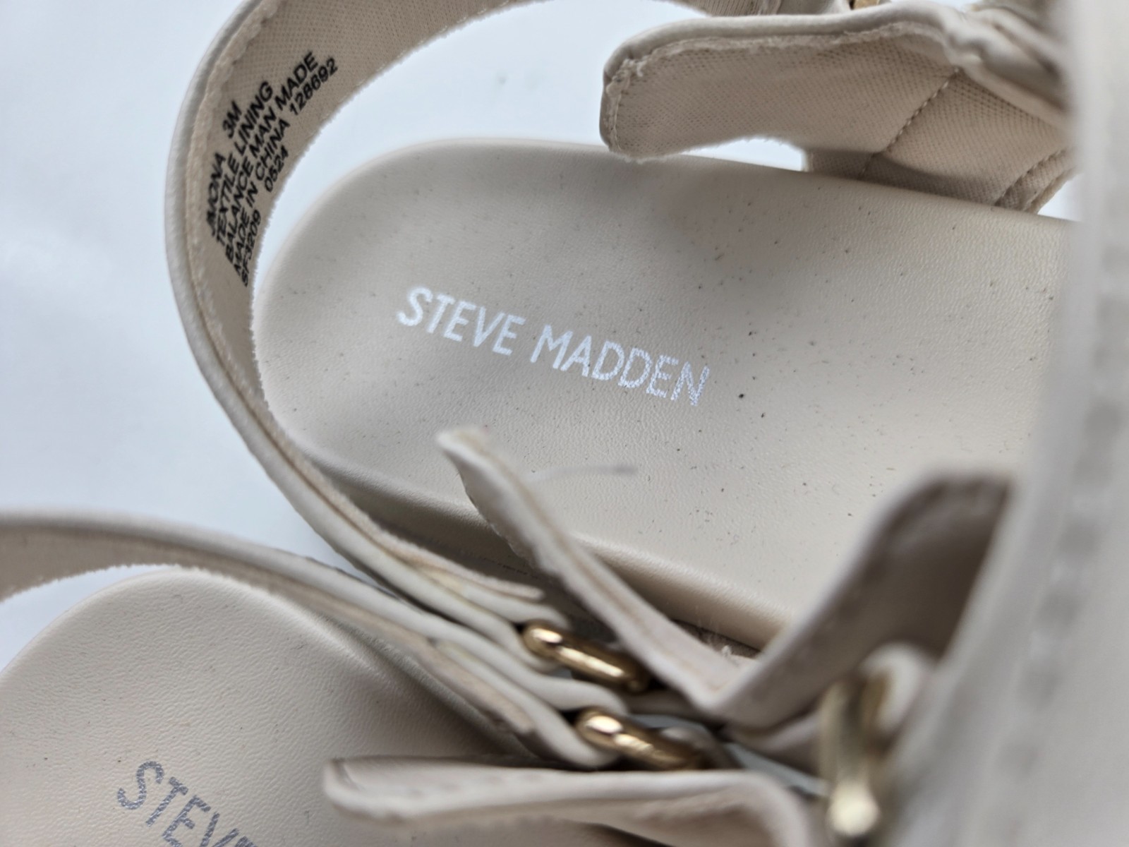 Bold Elevated Style: The Steve Madden MONA women's flatform sandals redefine a classic three-strap design with luxurious leather construction and eye-catching gold-tone hardware, perfect for making a statement.