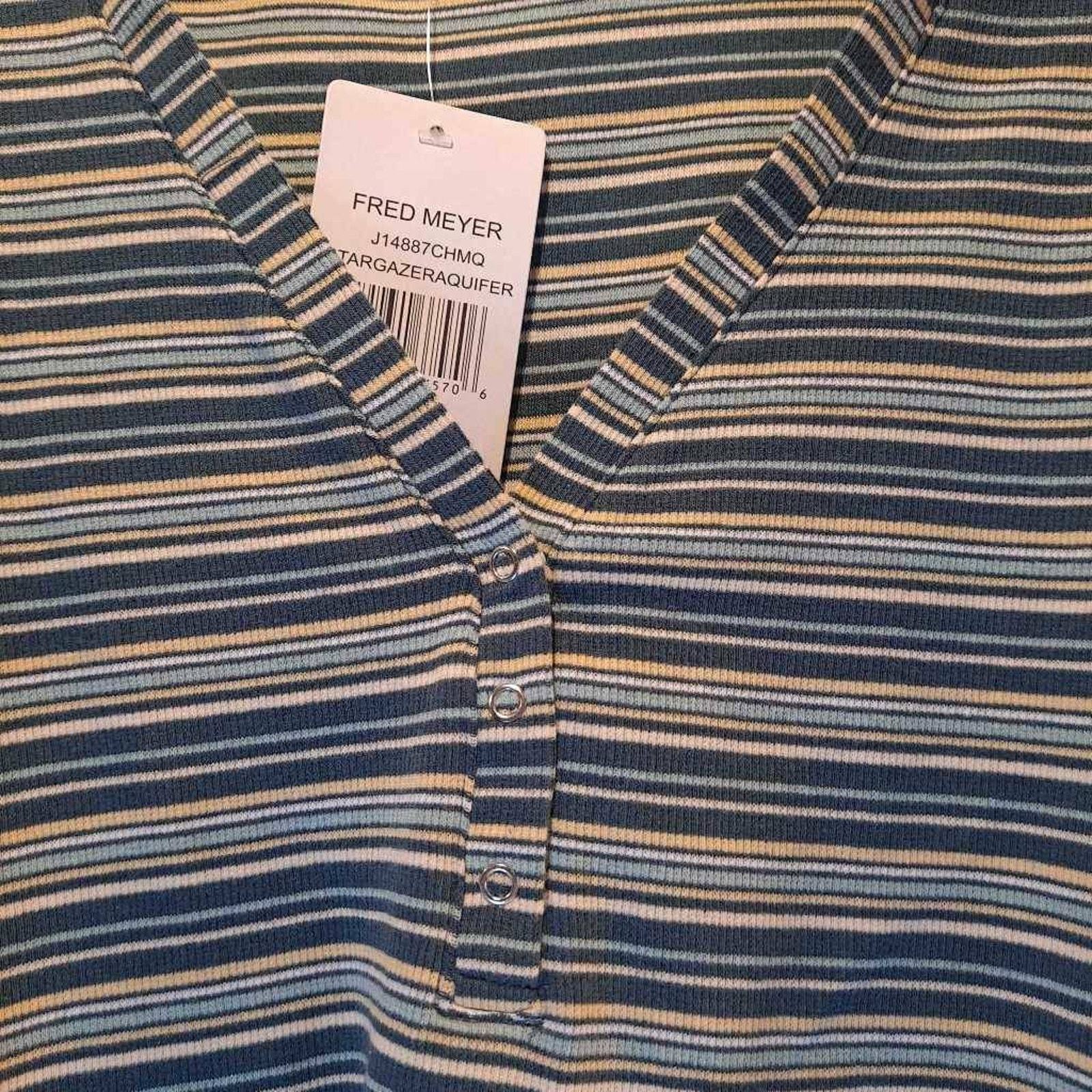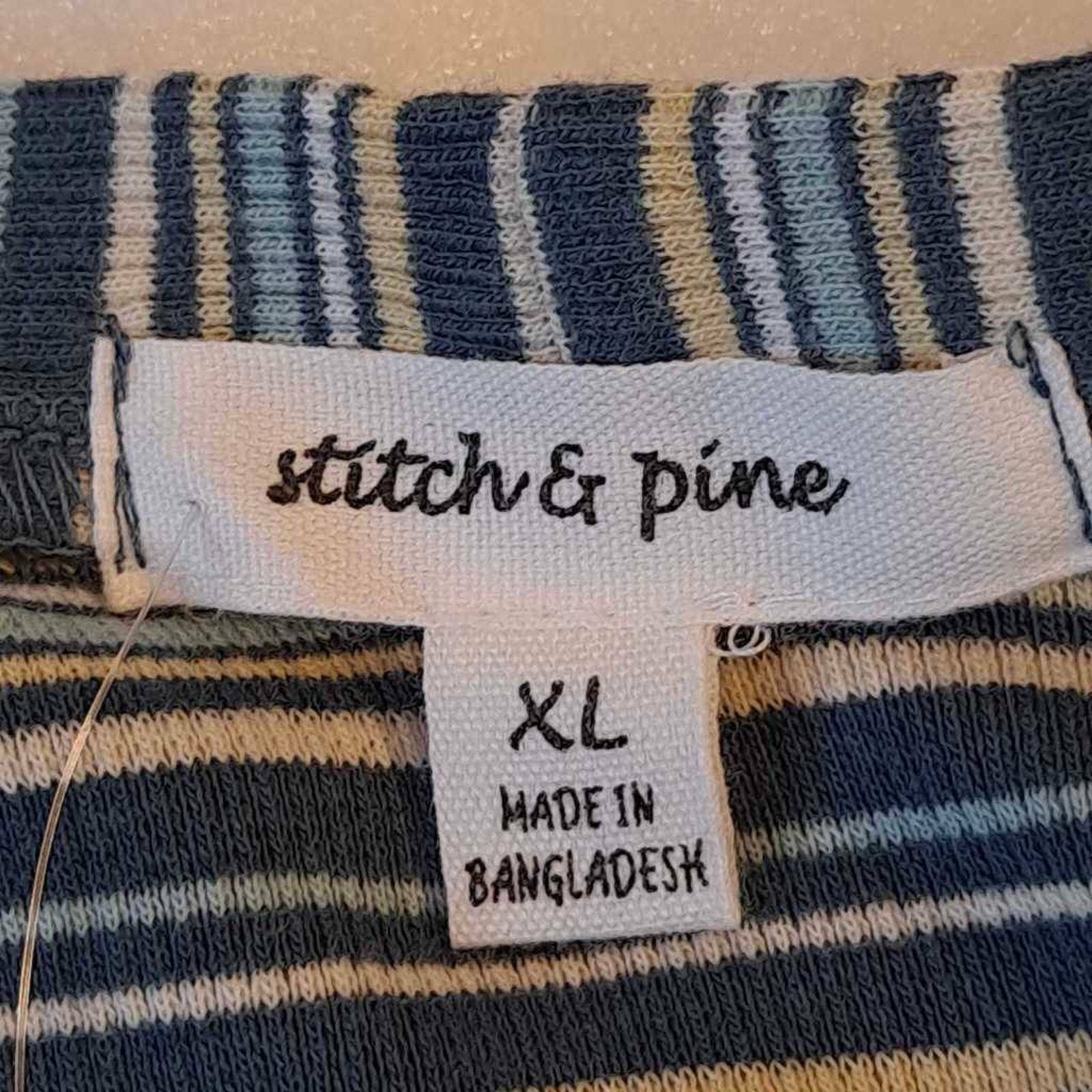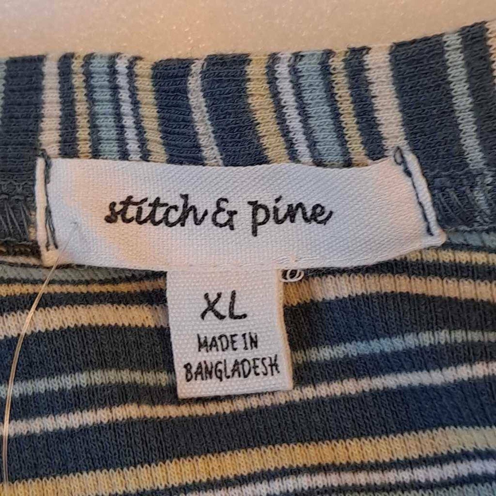 - Stitch & Pine Women's Knitted Henley Shirt, Blue/Brown Striped, Stretch, XL New