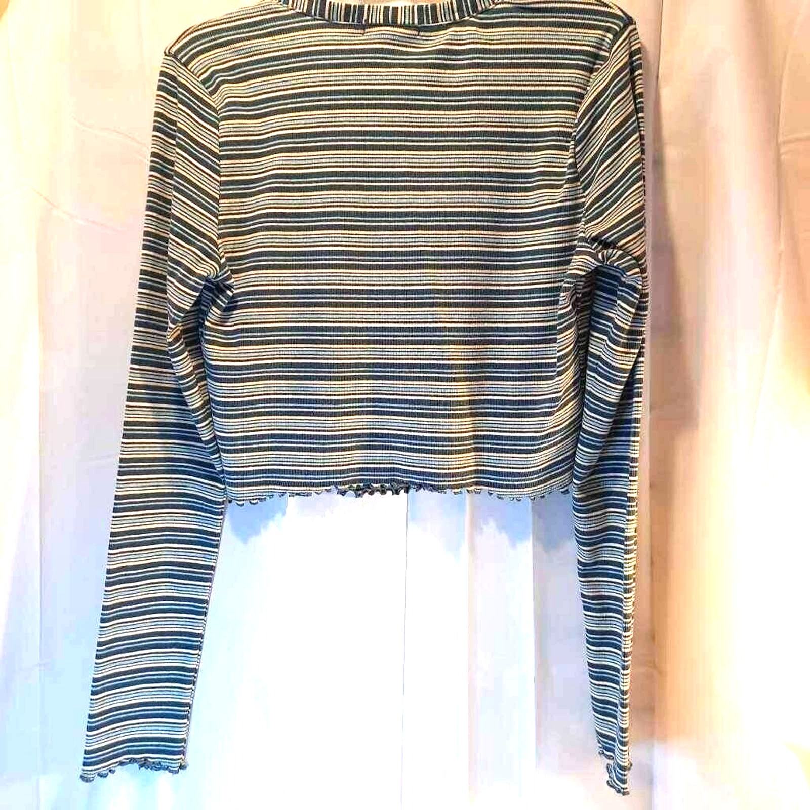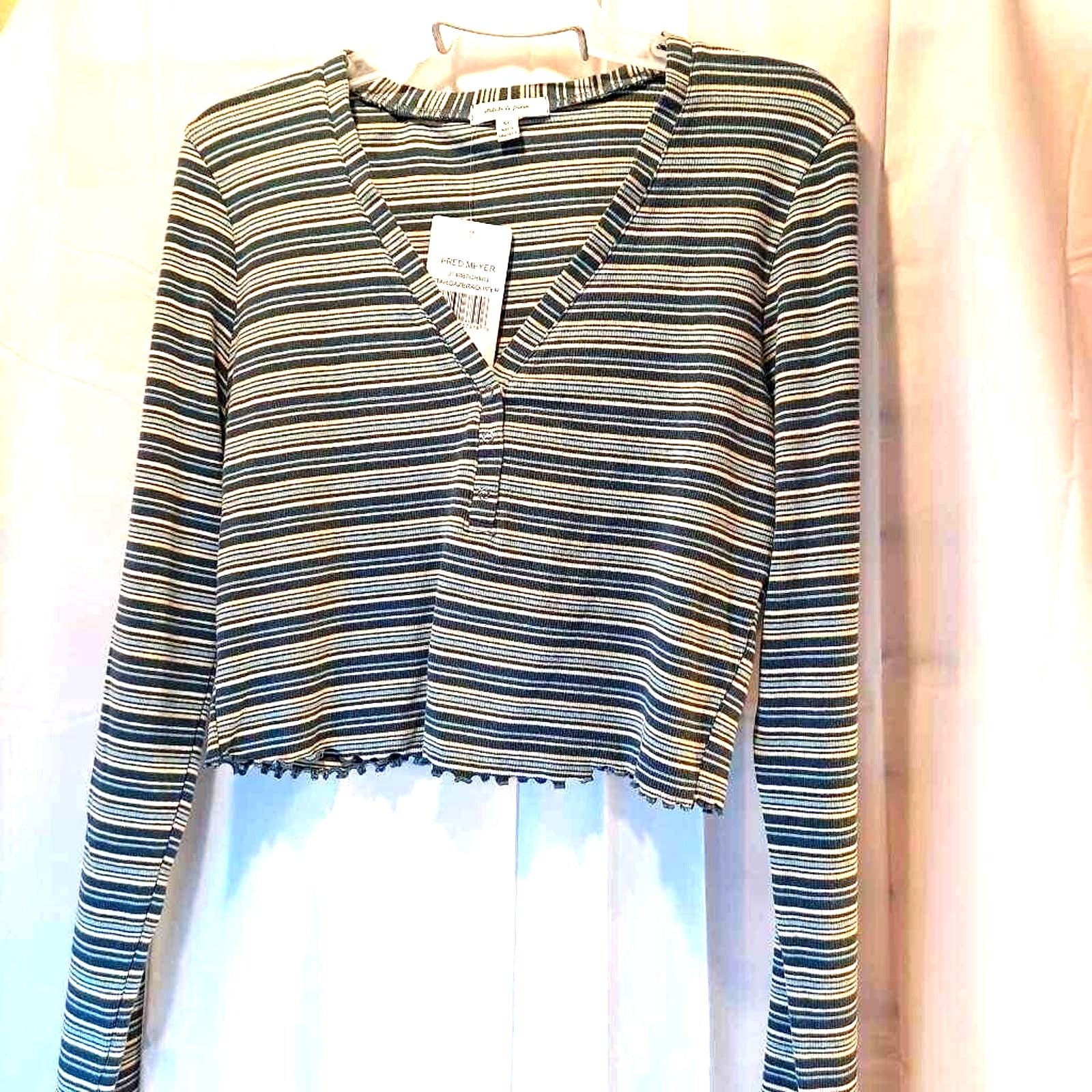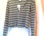 Stitch Pine Women's Knitted Crop Henley Shirt Blue Brown Striped Stretch XL New