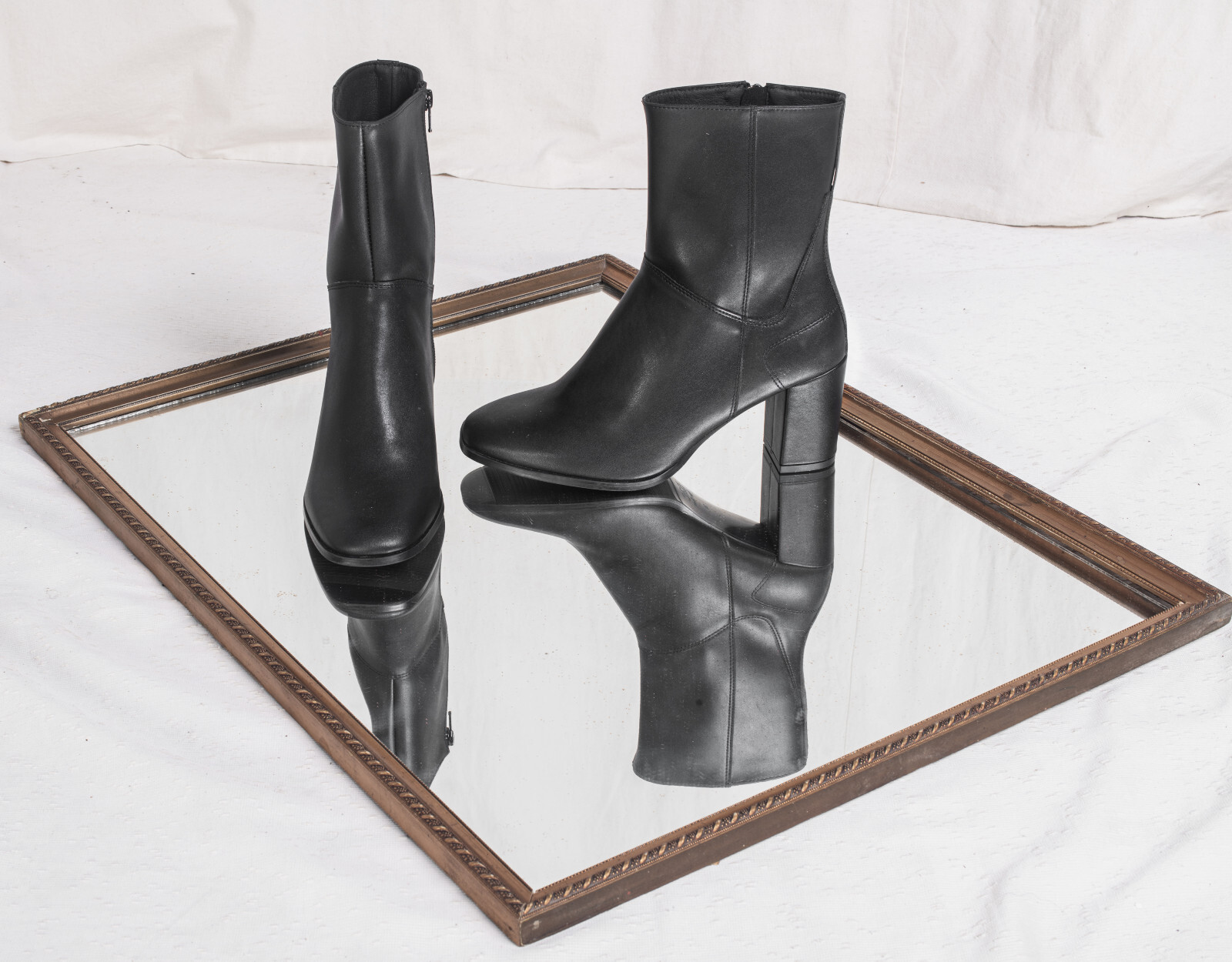 - Stivale nero con tacco alla caviglia da donna in Apple Skin vegano con cerniera