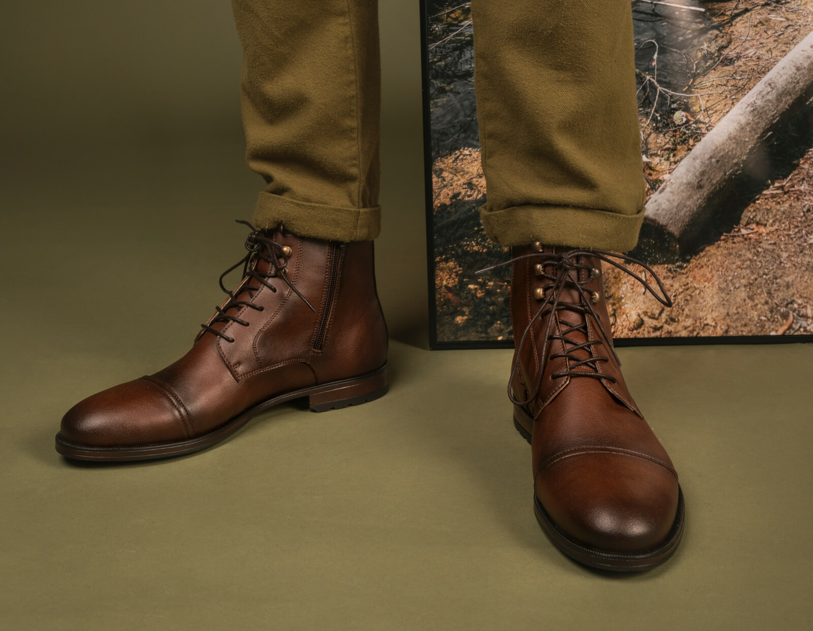 Stivaletto vegan da uomo stringhe resistente all'acqua con fodera traspirante