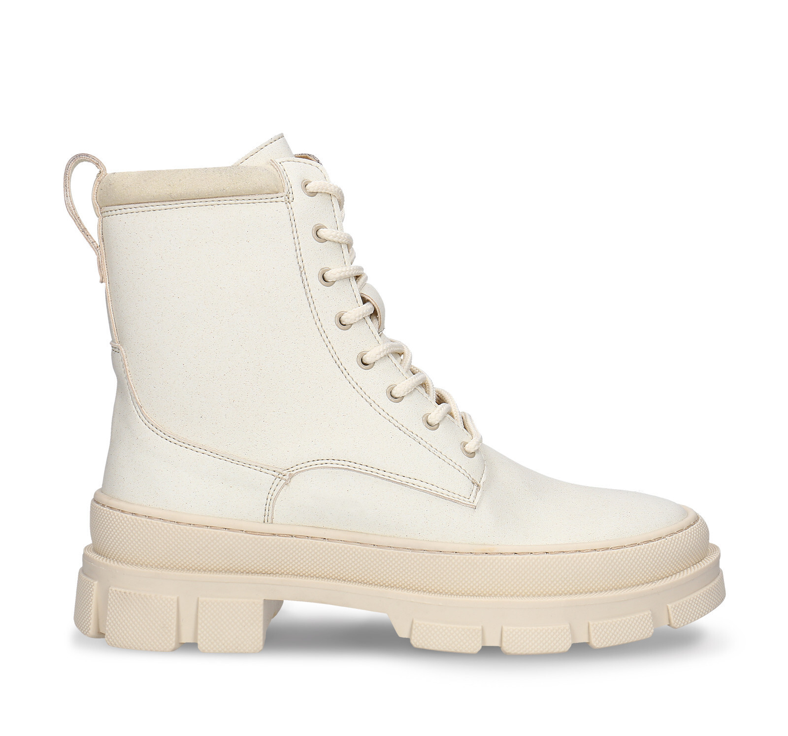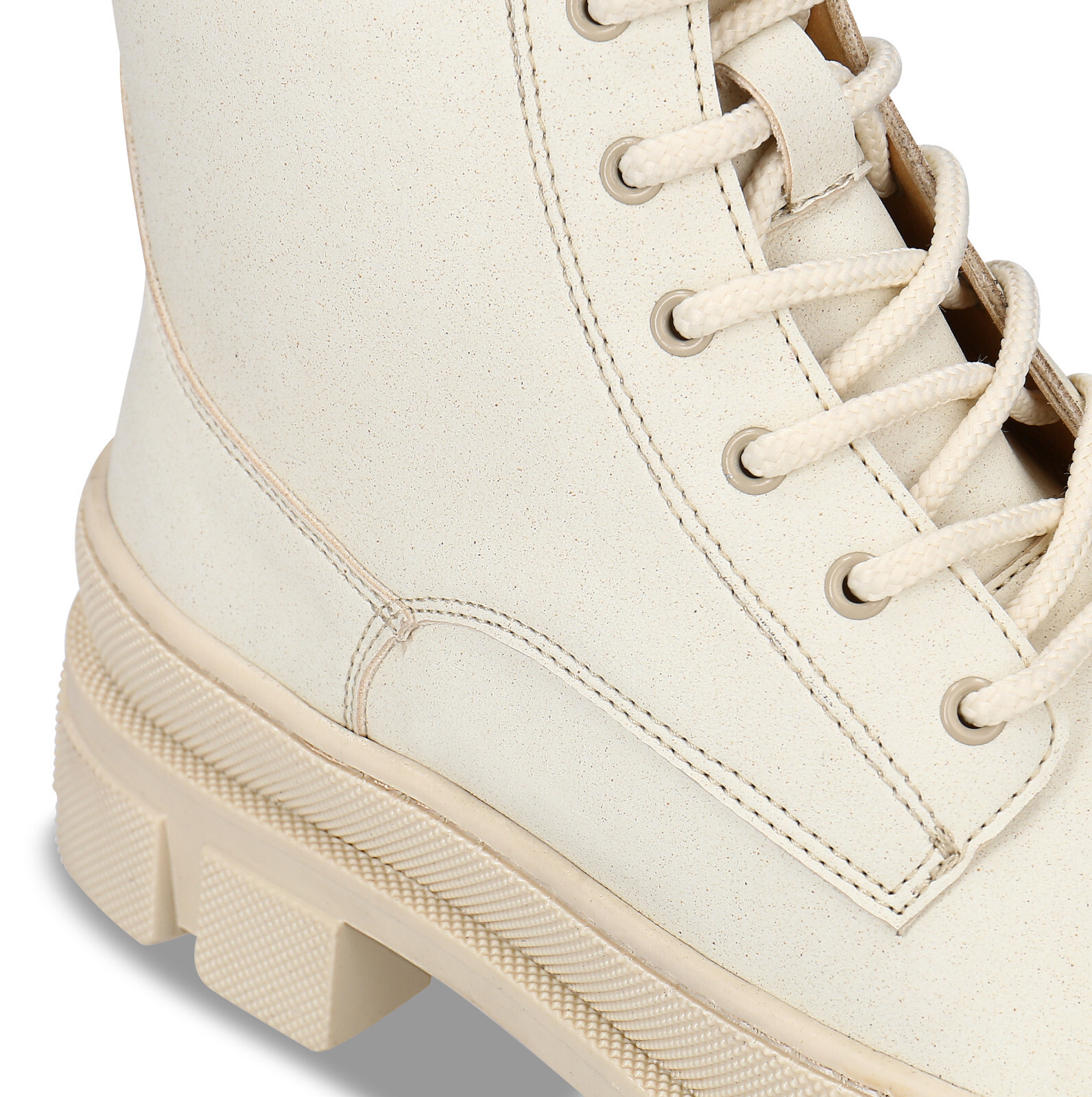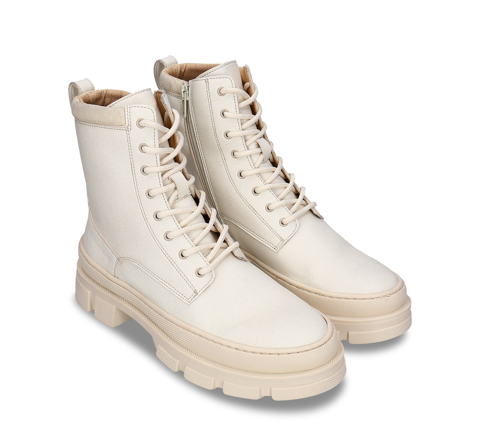 Stivali bianchi da donna con cerniera pelle vegana di mela suola rigata chunky