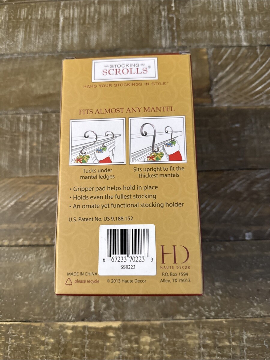 The Stocking Scrolls Christmas Stocking Holder is a festive and practical addition to your holiday decor. Made by the brand Stocking Scrolls, this stocking hanger is designed specifically for holding Christmas stockings with a unique scrolls design. Perfect for enhancing your mantel or shelf, this stocking holder adds a touch of charm and elegance to your home during the holiday season.