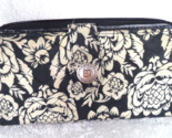 - Stone Mountain Wallet Quilted Cotton Floral Fabric Zip Closure Black Beige