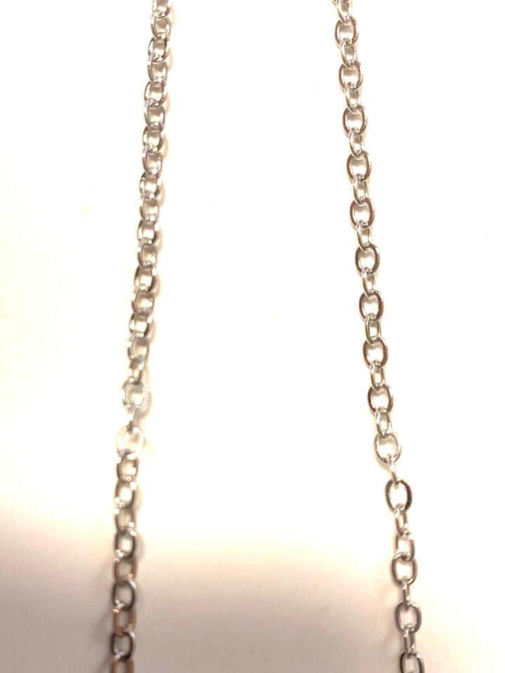 It measures approximately: 22" L. Comes with a 3 mm curb silver tone chain.