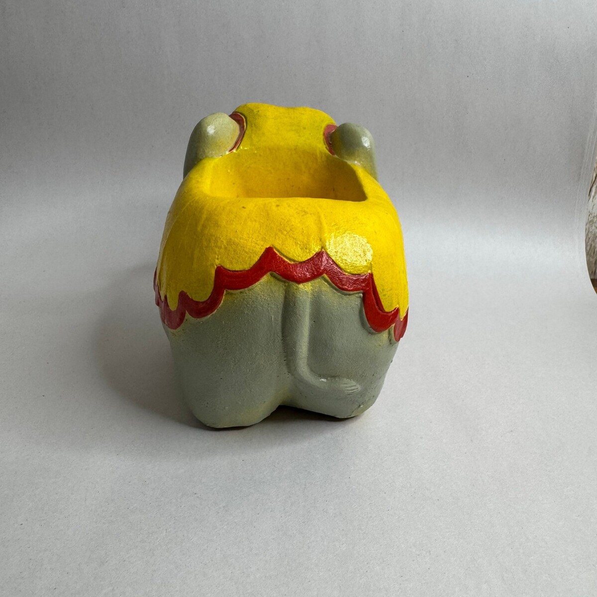 Keywords: elephant decor, animal planter, ceramic art, garden accessory, indoor plant, whimsical, kitschy, vintage style, desk organizer, gift idea, unique planter, hand painted