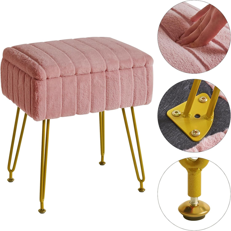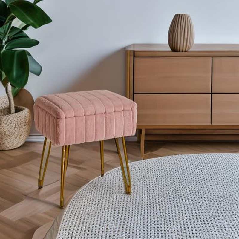 - Stool Chair with Storage Space, Footstool Ottoman, Small Side Table 4 Metal Legs