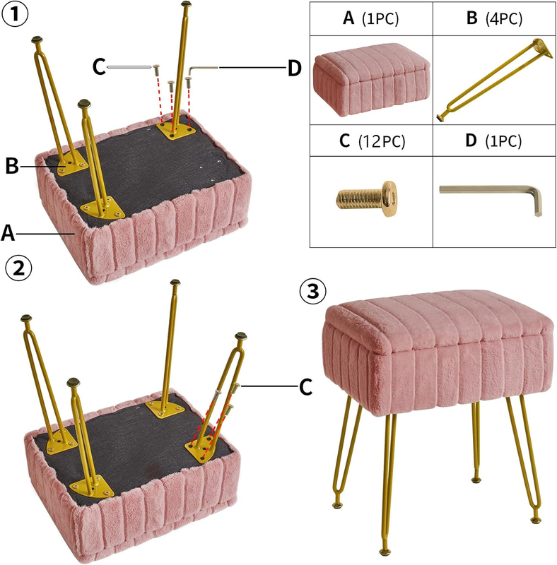 The stool is wrapped by soft, high-quality velvet and filled with memory foam inside, which is soft and comfortable and gives you an unforgettable using experience.