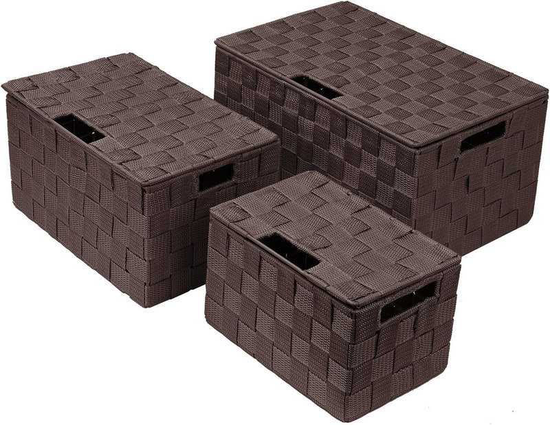 - Storage Box Woven Basket Bin Container Tote Cube Organizer Set Stackable