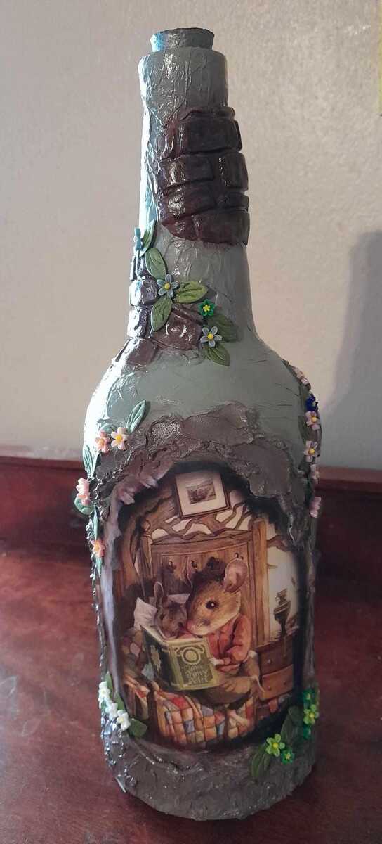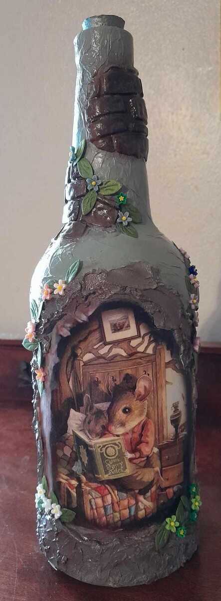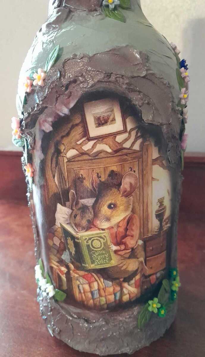 - Story Time Mouse House Glass Bottle Mixed Media Art Decor Collections Gifting Ma