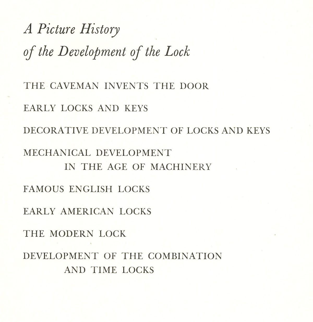 The history and development of locks, from early Egypt through 1950. Directed at a young audience.
