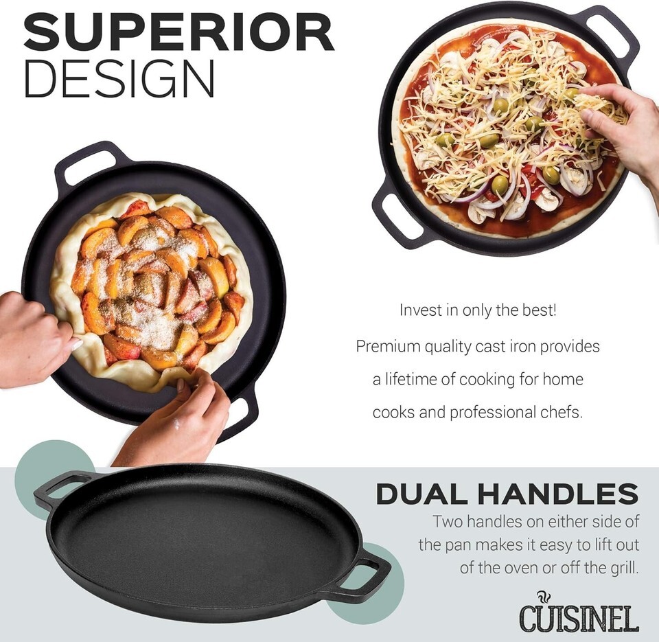 - Stove, Oven, or Grill Ready 13.5 Inch Cast Iron Pizza Skillet - Easy to Maintain