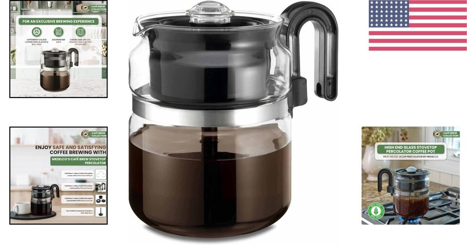 - Stovetop Percolator Coffee Pot - 8-Cup BPA-Free Glass for Electric & Gas Ranges