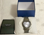 This beautiful Strada Genoa wristwatch is a luxurious accessory perfect for any occasion. The watch features a heart-shaped metal case with an intricate decorative design The bracelet band is made of metal and has a unique width.