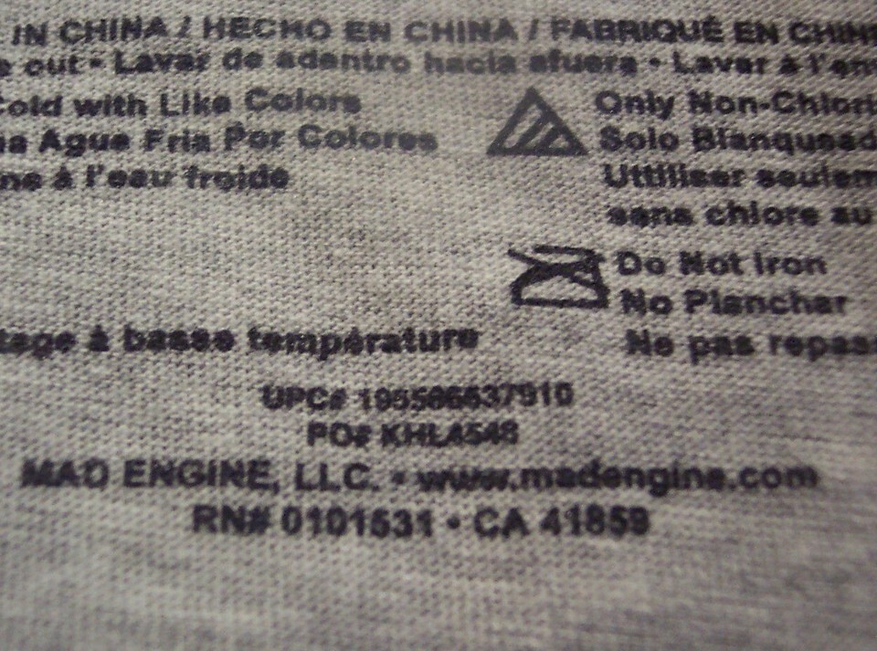 | Garment Care: |