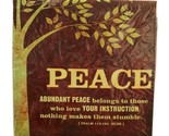 brown background and the image of a tree. The message on the print reads. PEACE. Abundant Peace belongs to those who love your instruction; Nothing makes them stumble. (PSALM 119:165 HCSB)