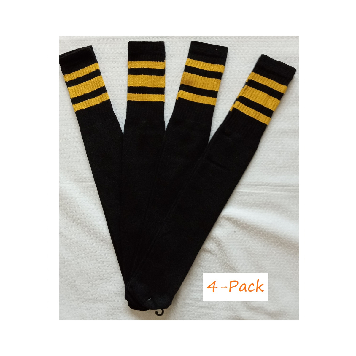 Baseball / Softball Striped Tube Socks - Black Yellow Unisex tube socks 23" Long Size: 10-15 80% Cotton, 20% Polyester Set of 4 Pairs Color: Black socks with Yellow stripes