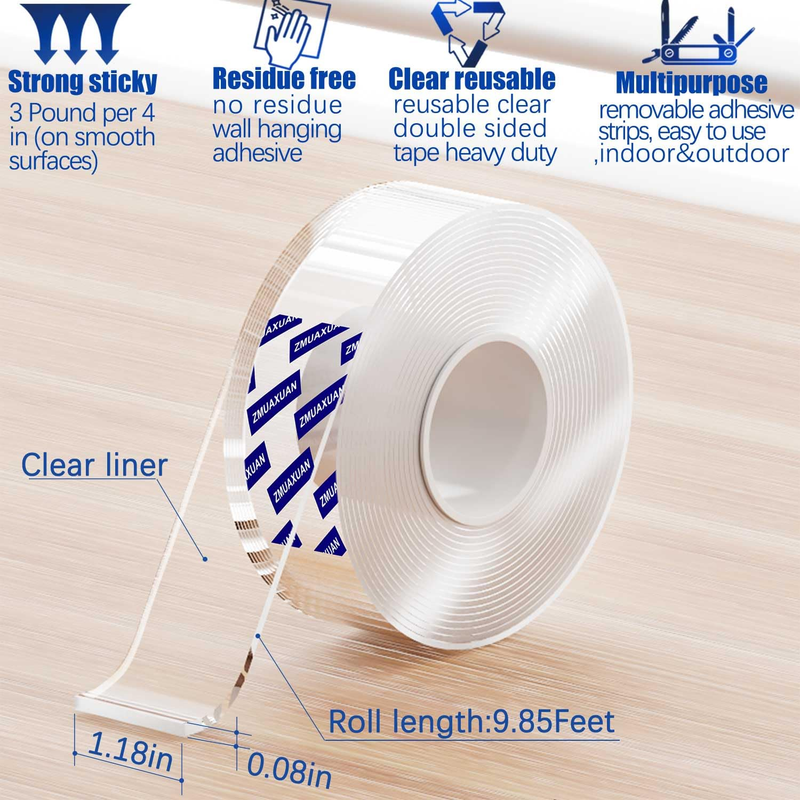 - Strong Nano Double Sided Tape Heavy Duty Mounting,Clear Removable Wall Sticky Ad
