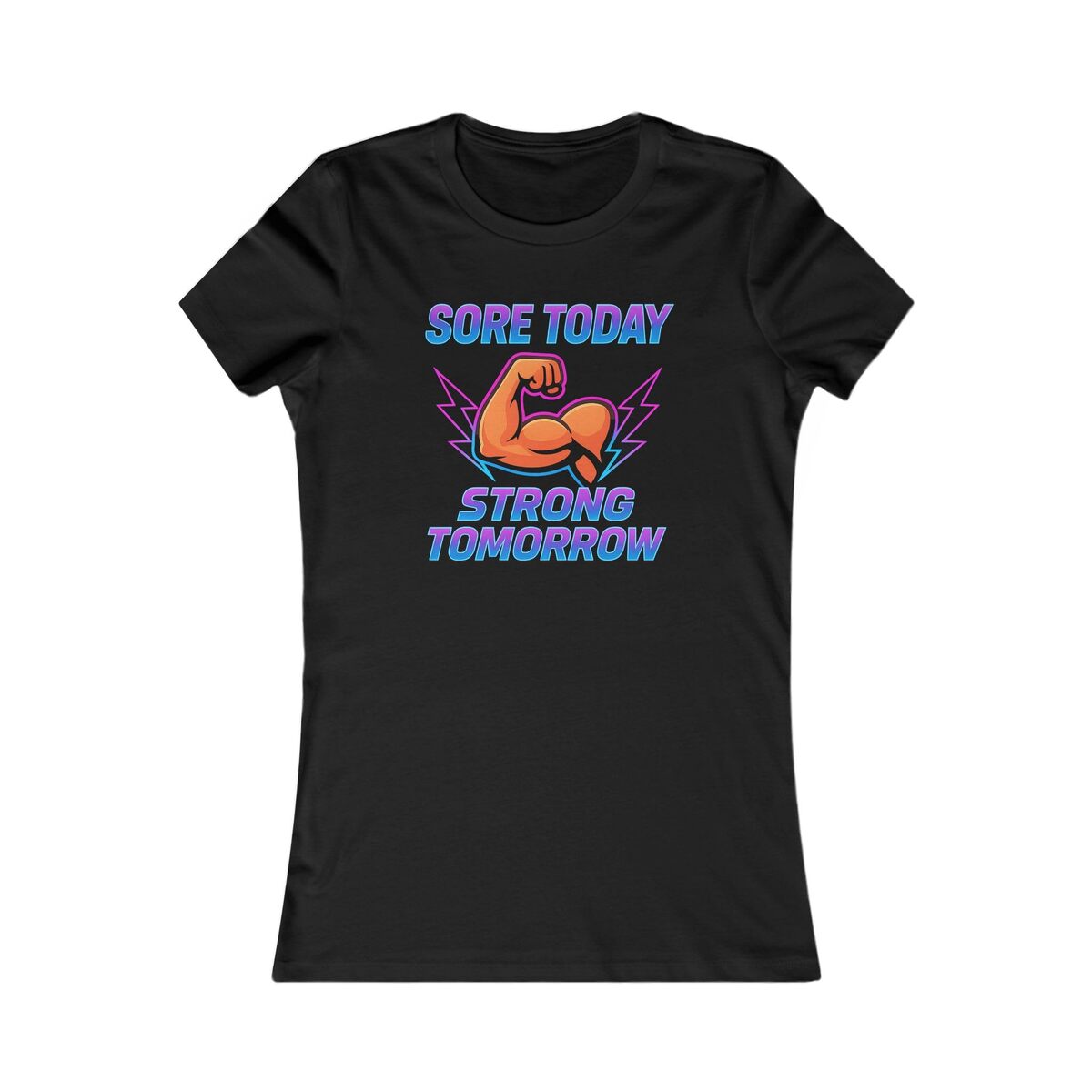Product description: Introducing the ultimate Women's Favorite Tee?designed for comfort and style, this t-shirt is your perfect go-to for everyday wear. Lightweight and soft, it embraces your body with a slim fit that flatters all shapes. The motivational graphic, ?Sore Today, Strong Tomorrow,? inspires fitness enthusiasts and empowers women on their wellness journeys. Whether you?re hitting the gym, running errands, or enjoying a casual outing, this tee seamlessly fits into your lifestyle. Ideal for gifting during occasions like birthdays, fitness events, or just because, it's perfect for anyone who loves staying active and looking great while doing it! Product features - With side seams for enhanced durability and shape retention - Ribbed knit collar provides a stretchy, shape-retaining fit - Shoulder tape stabilizes the garment and prevents stretching - Made from premium airlume combed and ringspun cotton for plush comfort - Lightweight fabric (4.2 oz/yd) that is breathable for all-day wear Care instructions - Machine wash: warm (max 40C or 105F) - Non-chlorine: bleach as needed - Tumble dry: low heat - Iron, steam or dry: medium heat - Do not dryclean