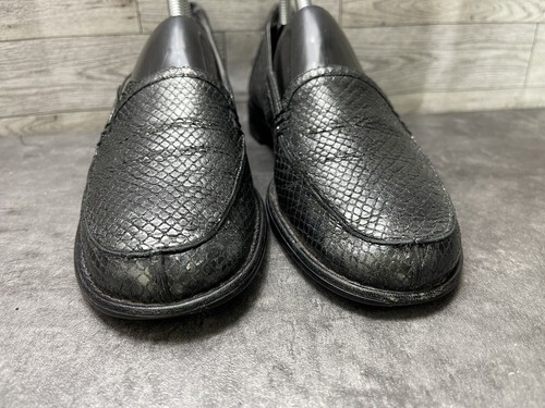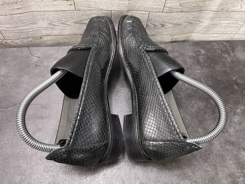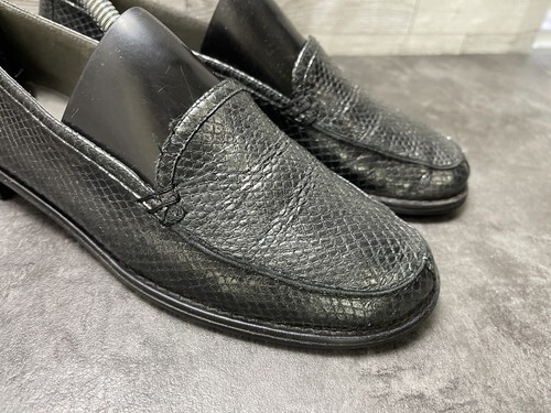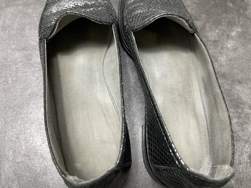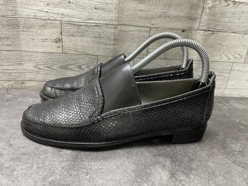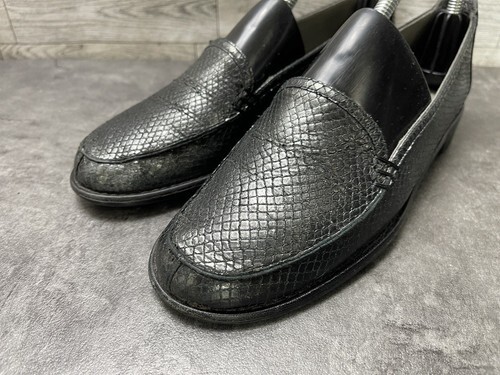 - Stuart Weitzman Loafers Women 6.5M Shoes Pewter Black Gray Leather Snake Flats