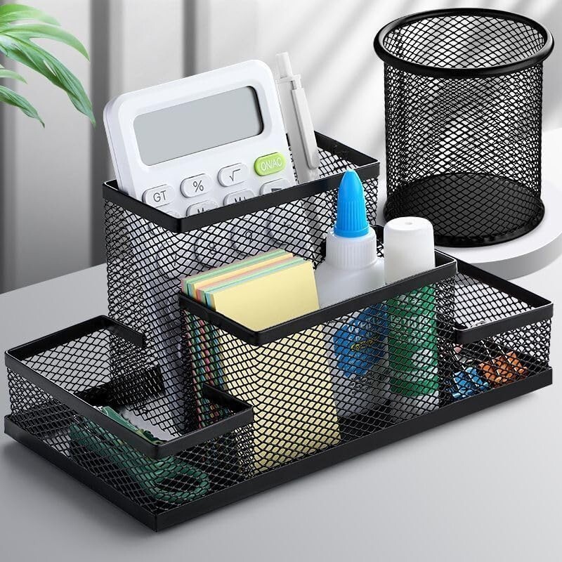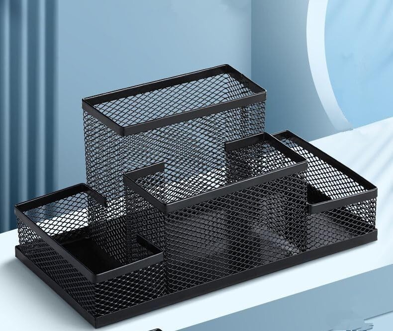 - Students Office Desk Mesh Style 4 Compartments Metal Pen 6.0" x 4" x 3.9"(L*W*H)