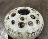 Studio Art Pottery Ceramic Flower Frog Green Glazed Stamped Minimalist Signed