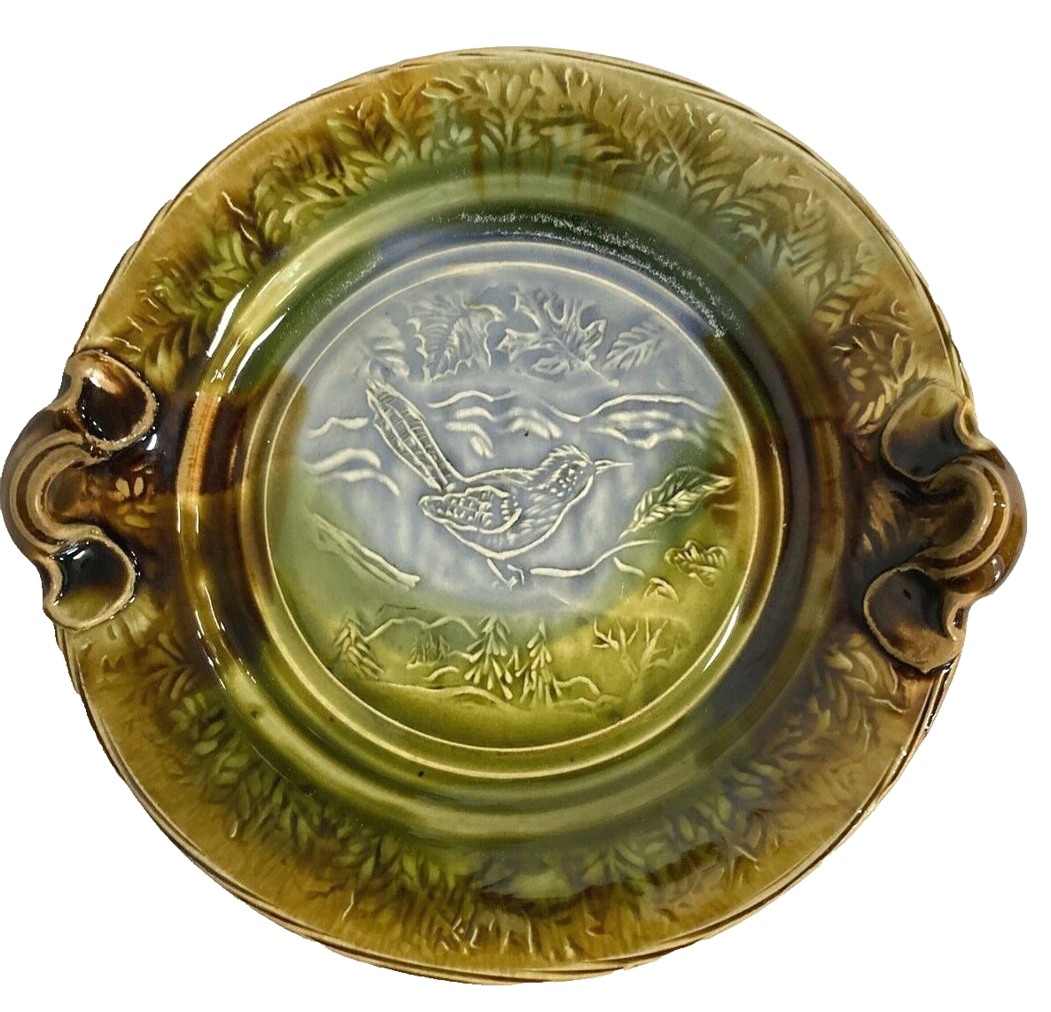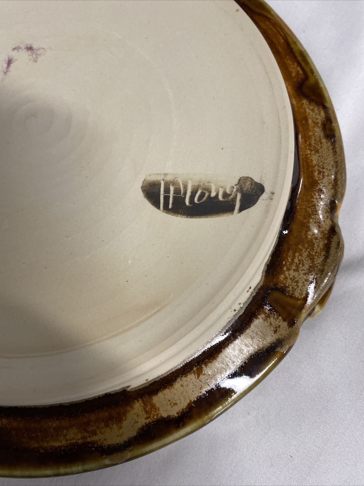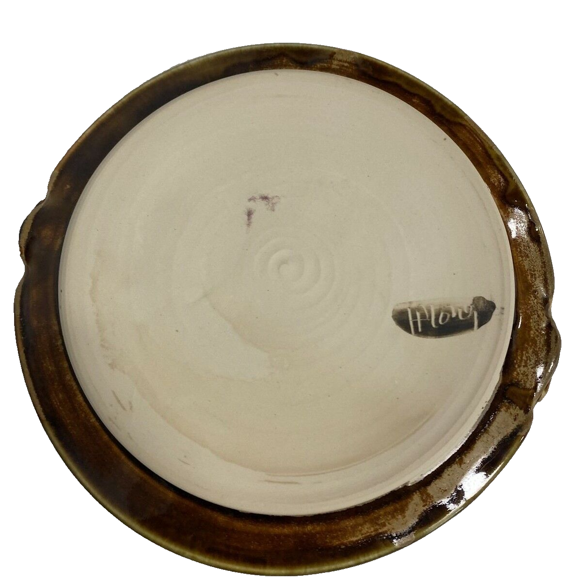 Studio Art Pottery Embossed Plate with Handles 7.25" Signed Flow