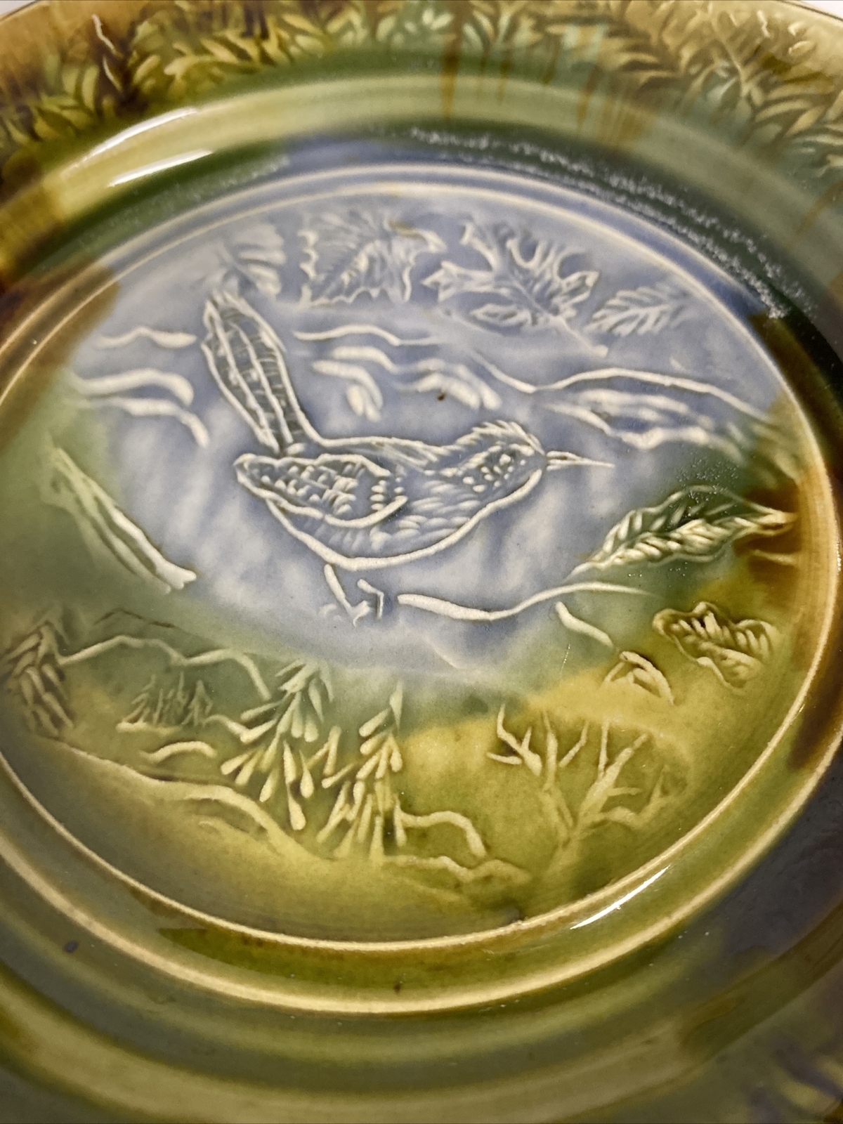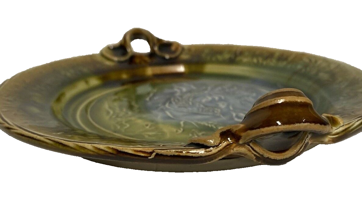 - Studio Art Pottery Embossed Plate with Handles 7.25" Signed Flow