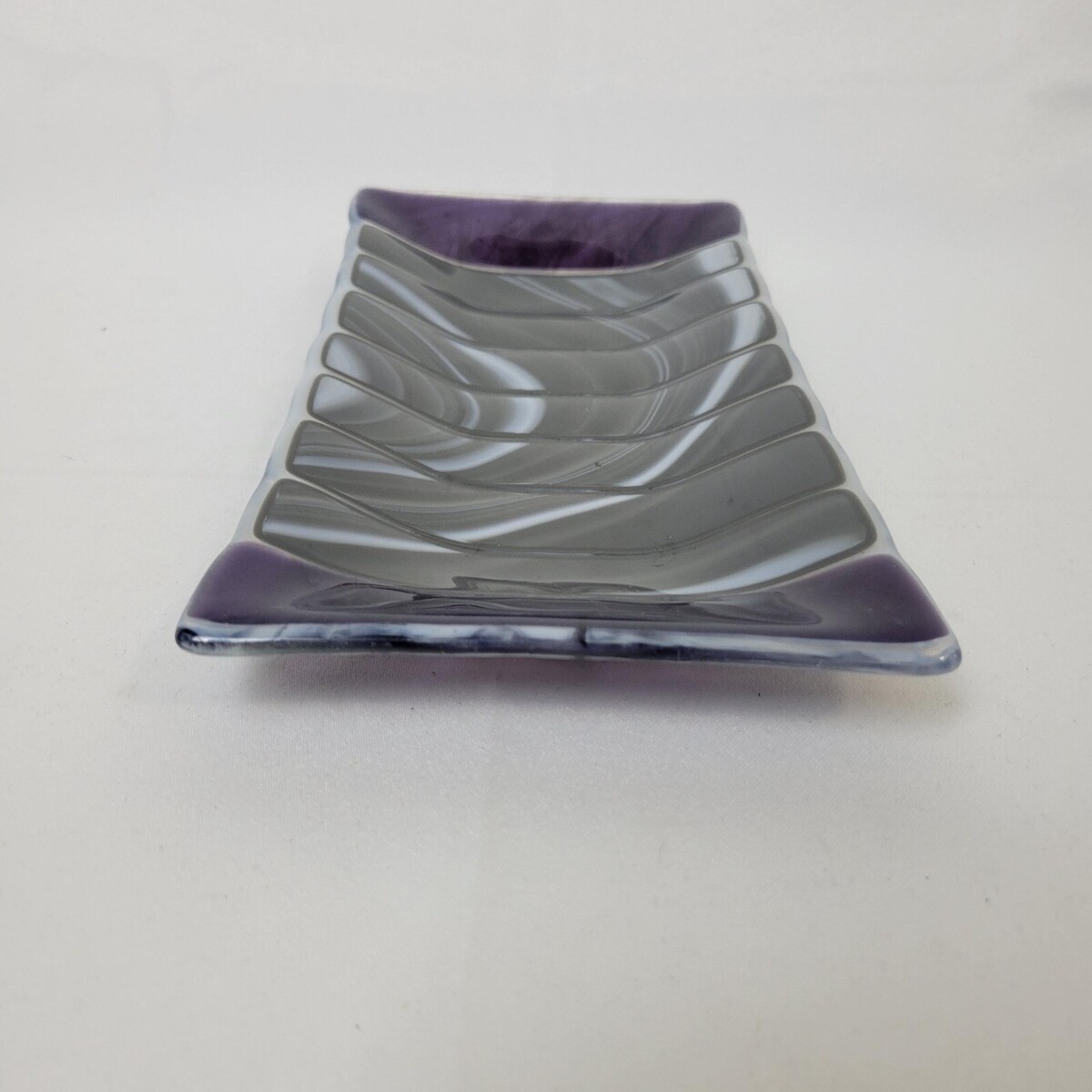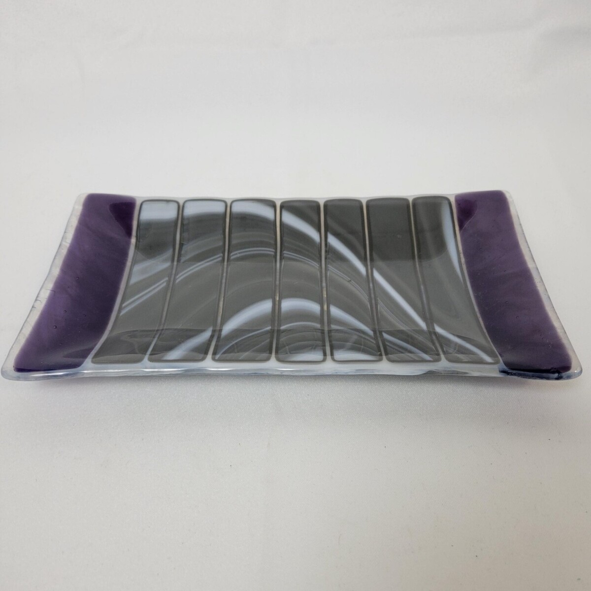 - Studio Fused Art Glass Rectangle Dish Tray Plate Gray Blue 9.5" x 5" No Chips