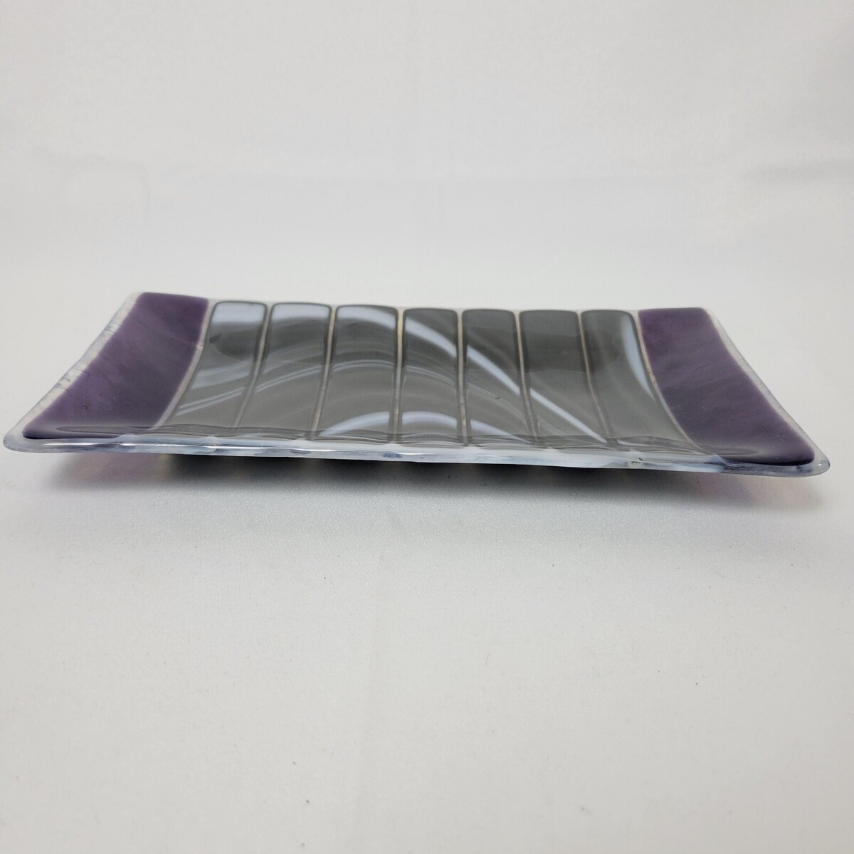 Studio Fused Art Glass Rectangle Dish Tray Plate Gray Blue 9.5" x 5" No Chips