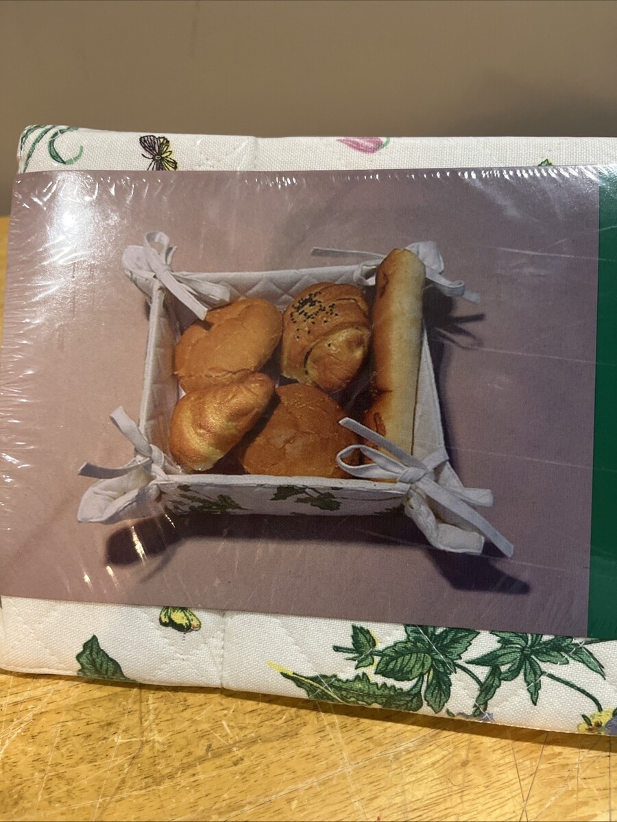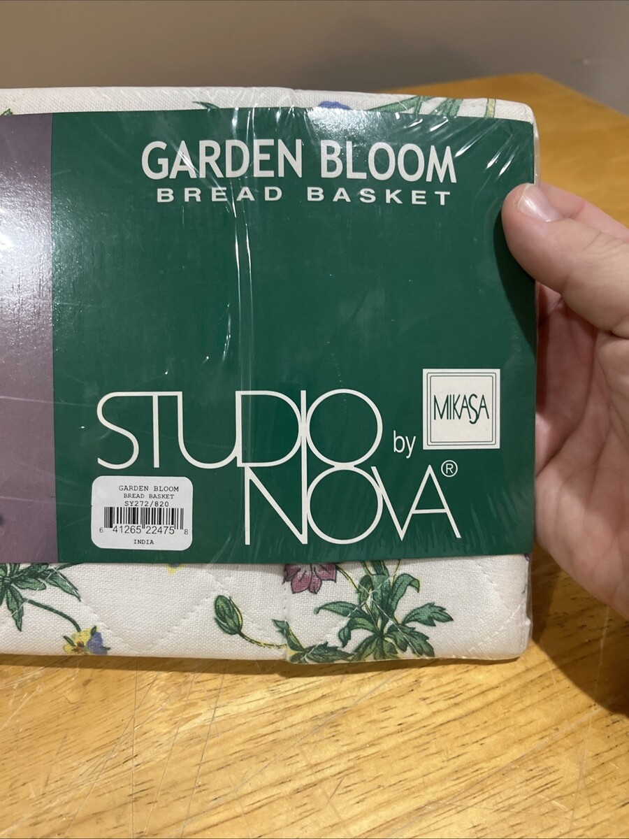 - Studio Nova Garden Bloom Fabric Bread Basket Quilted Floral Vtg Mikasa