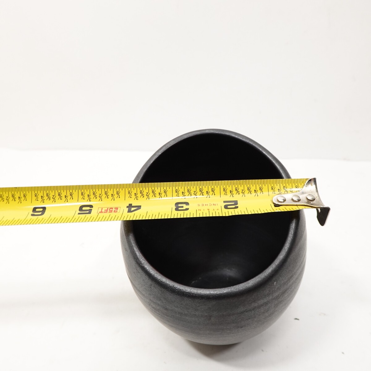 - Studio Pottery Black Matte Modern Vase Signed M. Swan 5” Hand Thrown Asymmetrica
