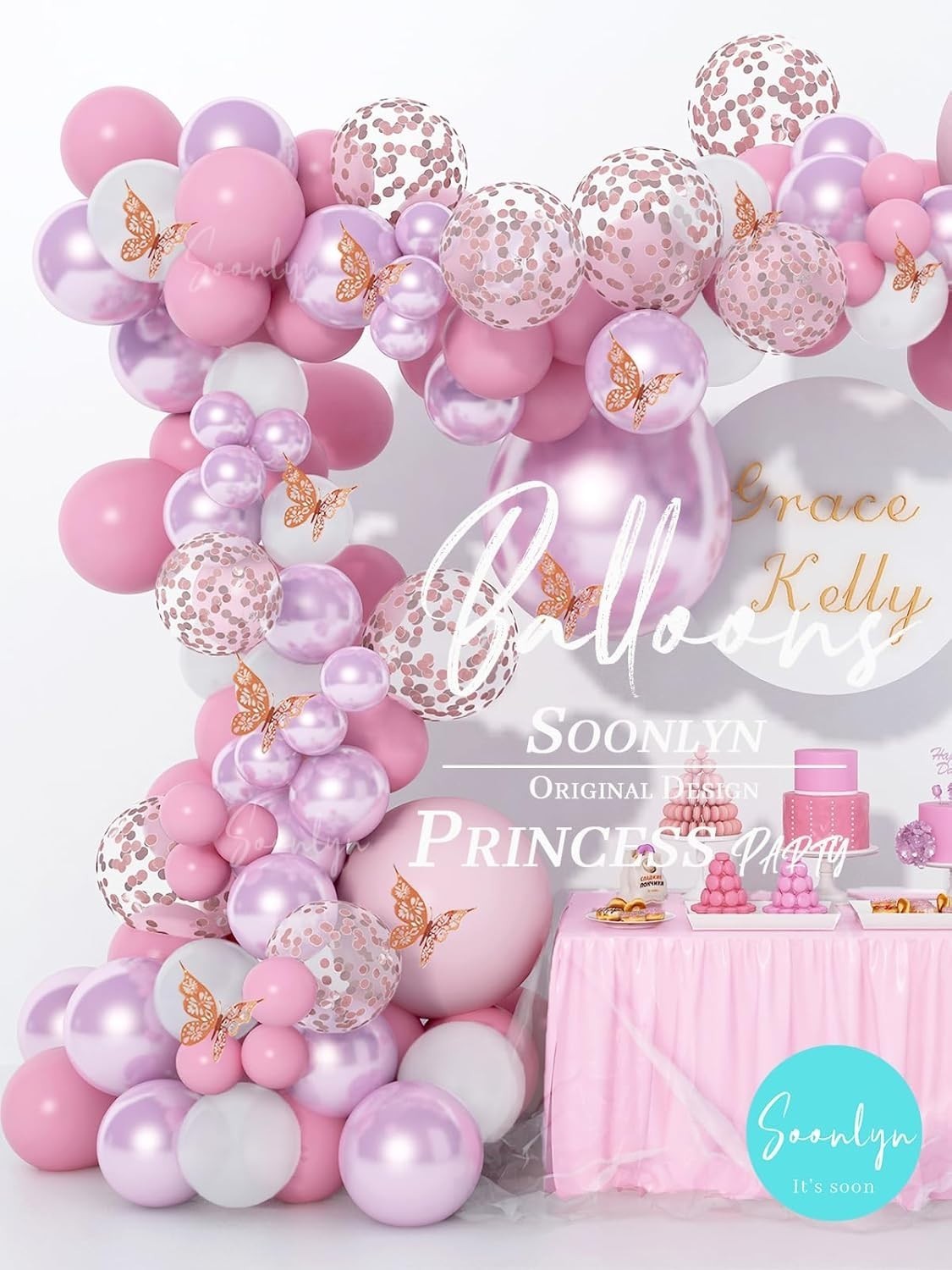 - Stunning 13ft Pink Balloon Arch Kit for Butterfly Theme Celebrations & Birthdays