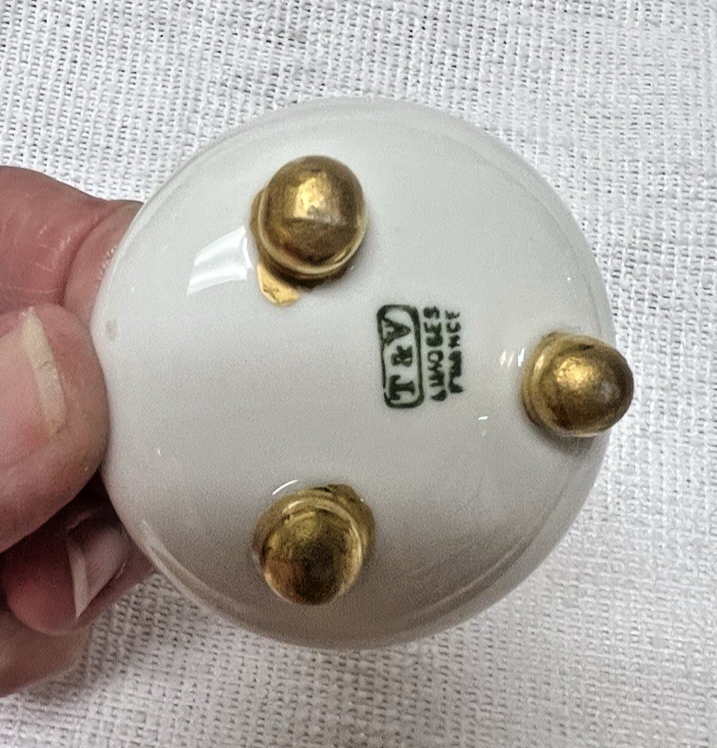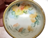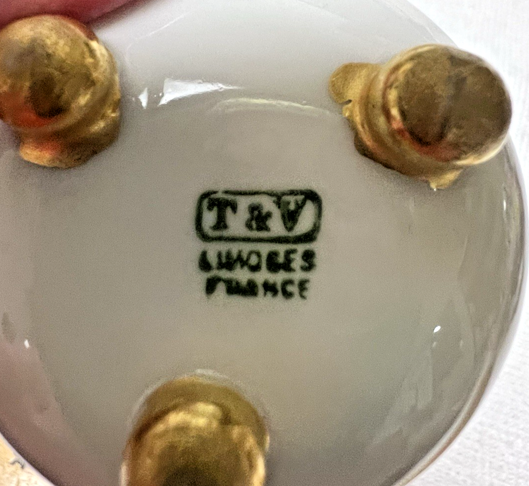 - Stunning Limoges Yellow Orange Floral w GOLD Open Salt Dip 3 Ball Feet 1 7/8 W