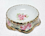 Stunning Pink Roses on Green w GOLD Hand Painted Salt Dip 2 1/4 W x 5/8 T