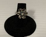 Stunning Silver Tone Round Simulated Green Stone Flower Floral Ring Size 5 KG