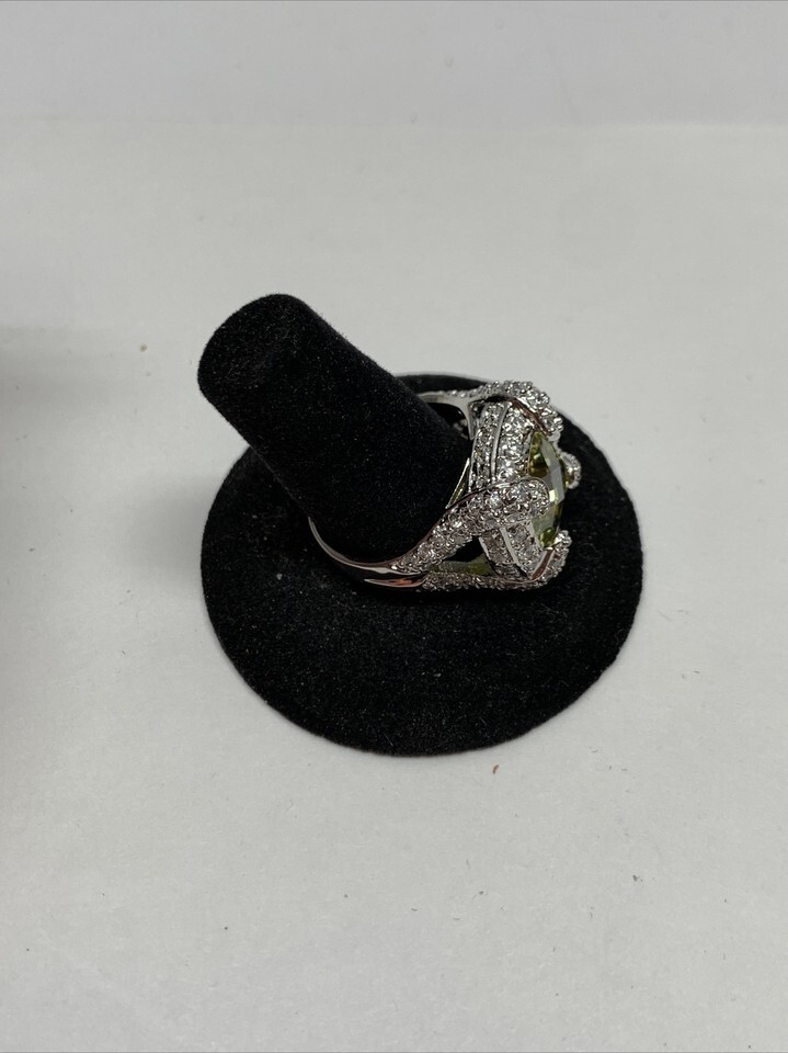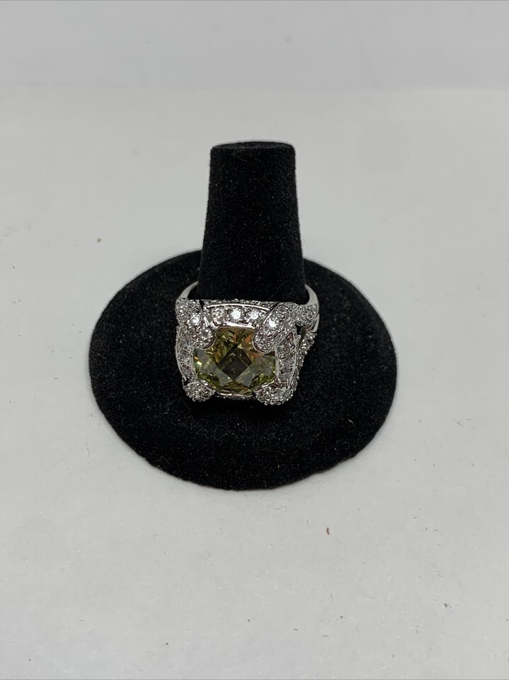 - Stunning Silver Tone Square Simulated Light Yellow Stone Ring Size 9.5 KG