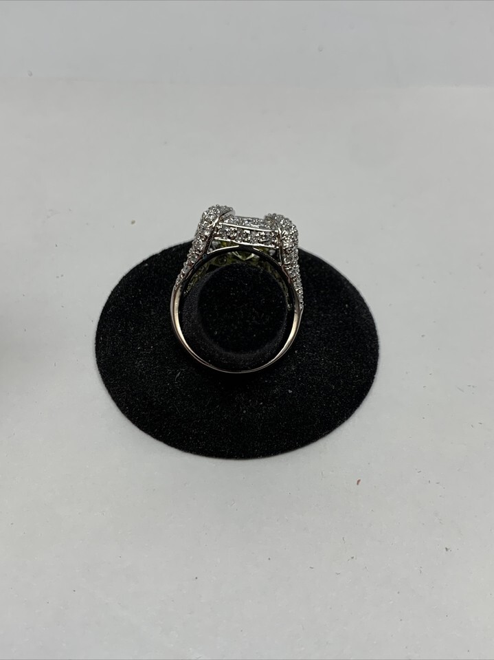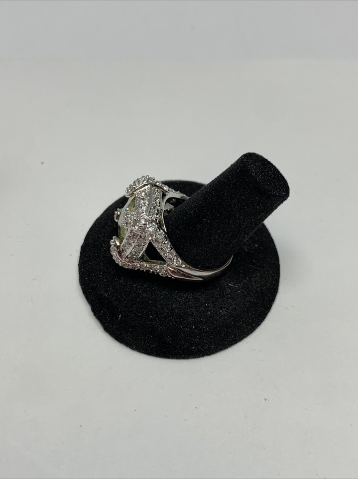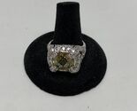 Stunning Silver Tone Square Simulated Light Yellow Stone Ring Size 9.5 KG