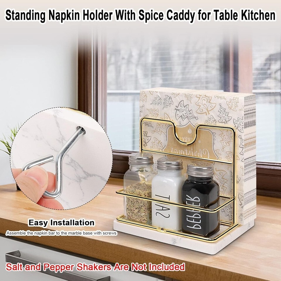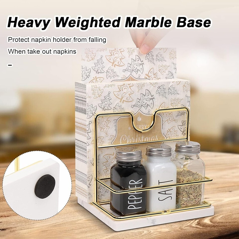 - Sturdy Freestanding Napkin Holder with Marble Base - Modern Decorative Caddy