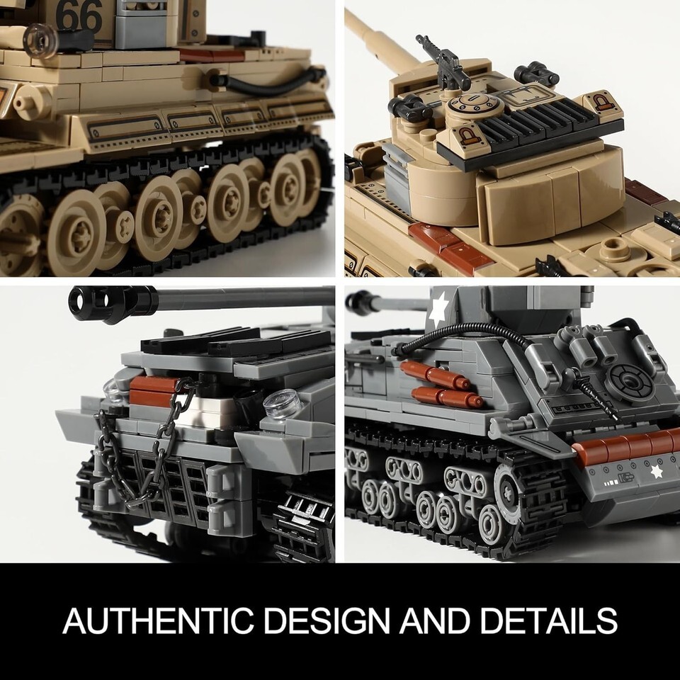 Step into history and create your own legends with this remarkable building set featuring the German Tiger and U.S. M4 Sherman tanks. Constructed with 1184 precision-cut blocks, this kit not only provides a challenging experience but also immerses you in the thrilling world of WWII. Each tank, laden with authentic details and realistic accessories, will spark your imagination and passion for military history.