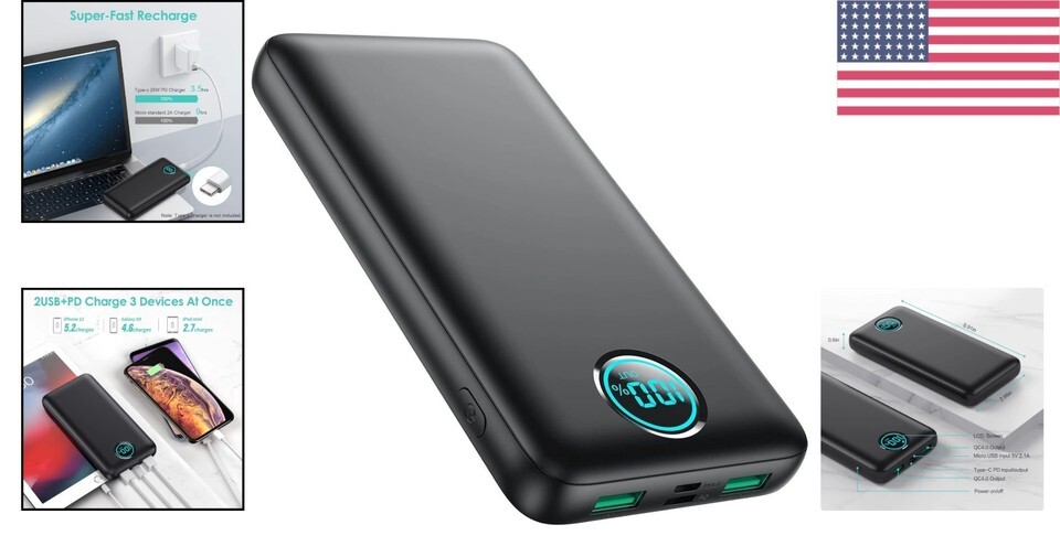 - Stylish 30,800mAh Portable Charger – LCD Indicator, Fast Charging, Safe Design