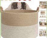 Stylish 90L Cotton Jute Storage Basket with Handles for Home Organization