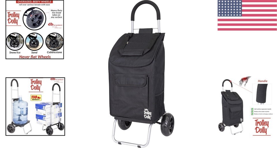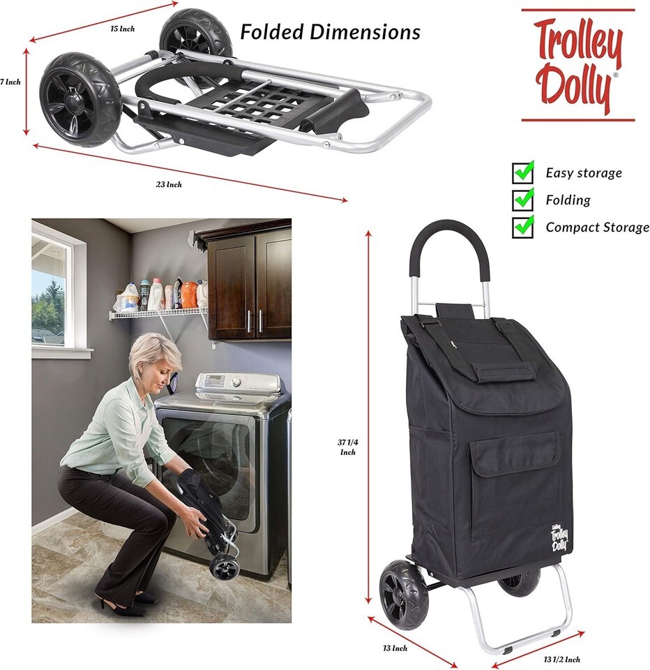- Stylish Black Foldable Shopping Trolley with Beefy Wheels & Ergonomic Handle
