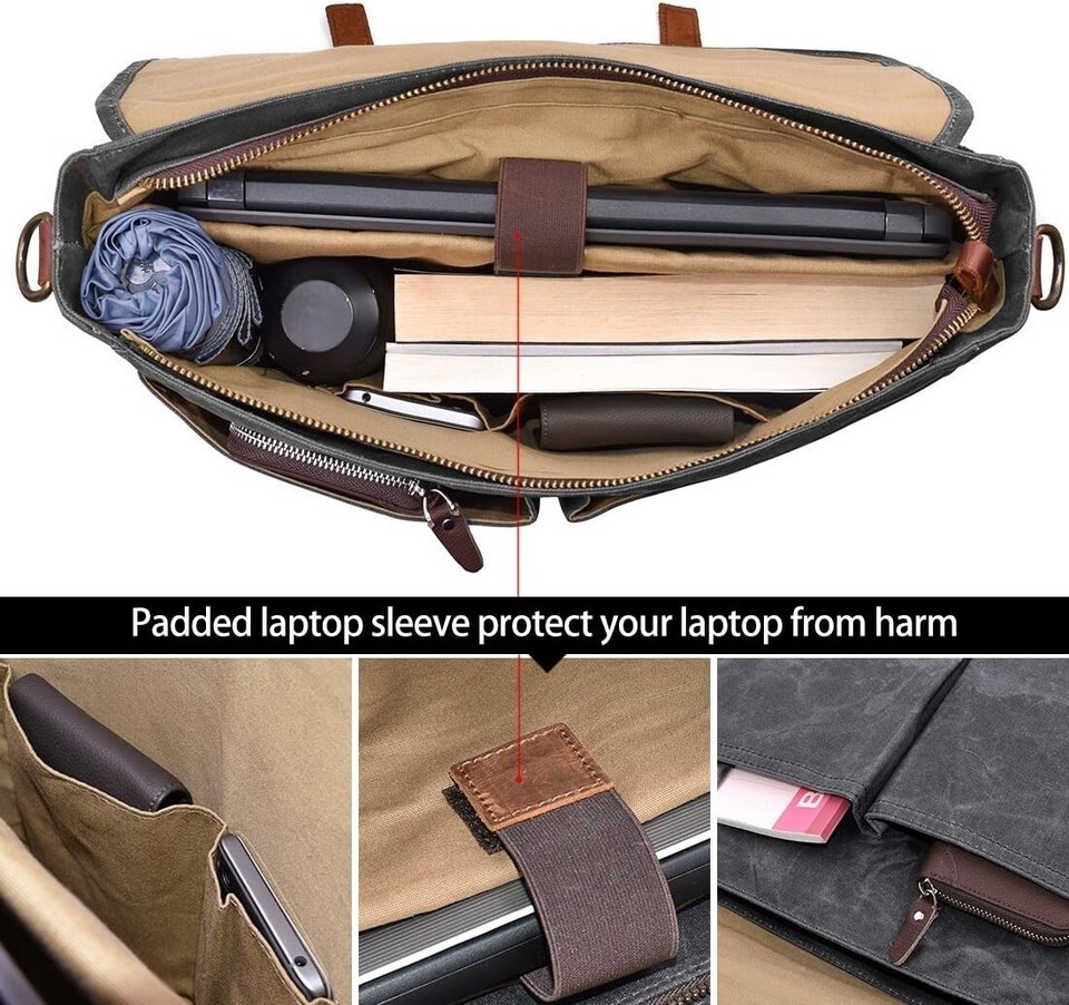 Features: Adjustable Strap,Detachable Strap,Waterproof,Durable,Vintage Style,Removable Strap,Padded Handle,Magnetic Snap,Padded Laptop Sleeve,Secure Zipper,Multiple Pockets,Organizational Pockets