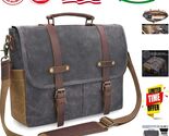 - Stylish Grey Messenger Bag - 15.6 Inch Waterproof Leather & Canvas Briefcase