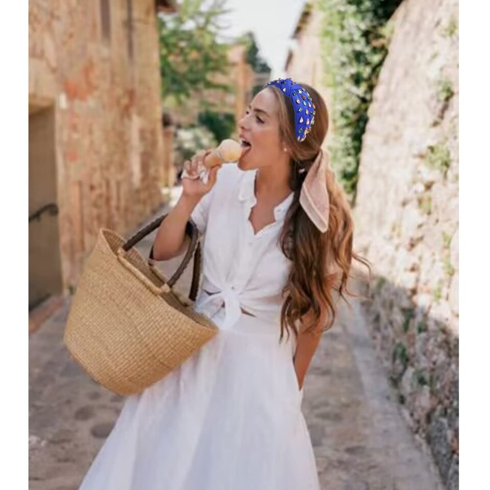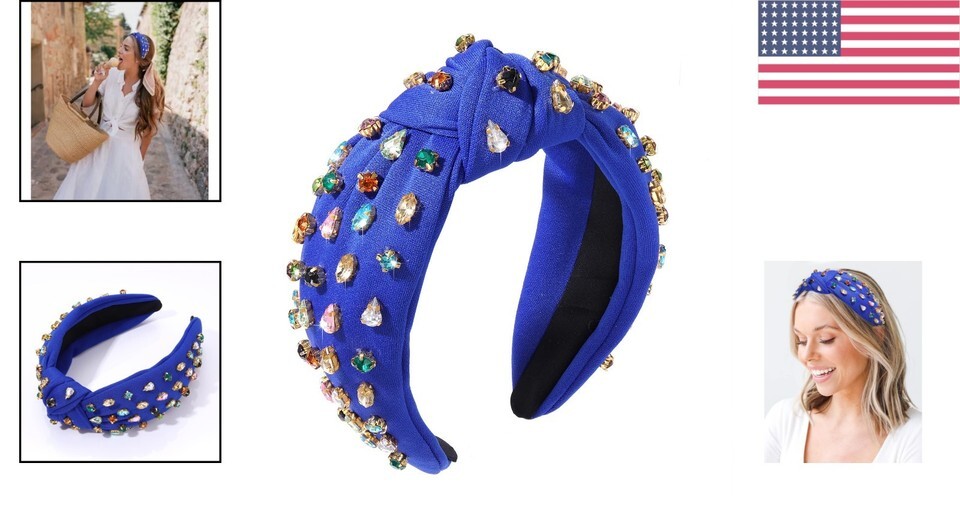 - Stylish Wide Top Knot Headband with Rhinestones - Elegant Fashion Statement