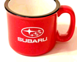The product is a Subaru ceramic campfire style coffee mug in a vibrant red color with a white and black speckled design. With a capacity of approximately 15 fl oz, this coffee mug features the Subaru logo and is perfect for enjoying your favorite hot beverages. The rustic campfire style adds a touch of outdoor adventure to your coffee-drinking experience, making it a great addition to any Subaru enthusiast's collection.Light wear.